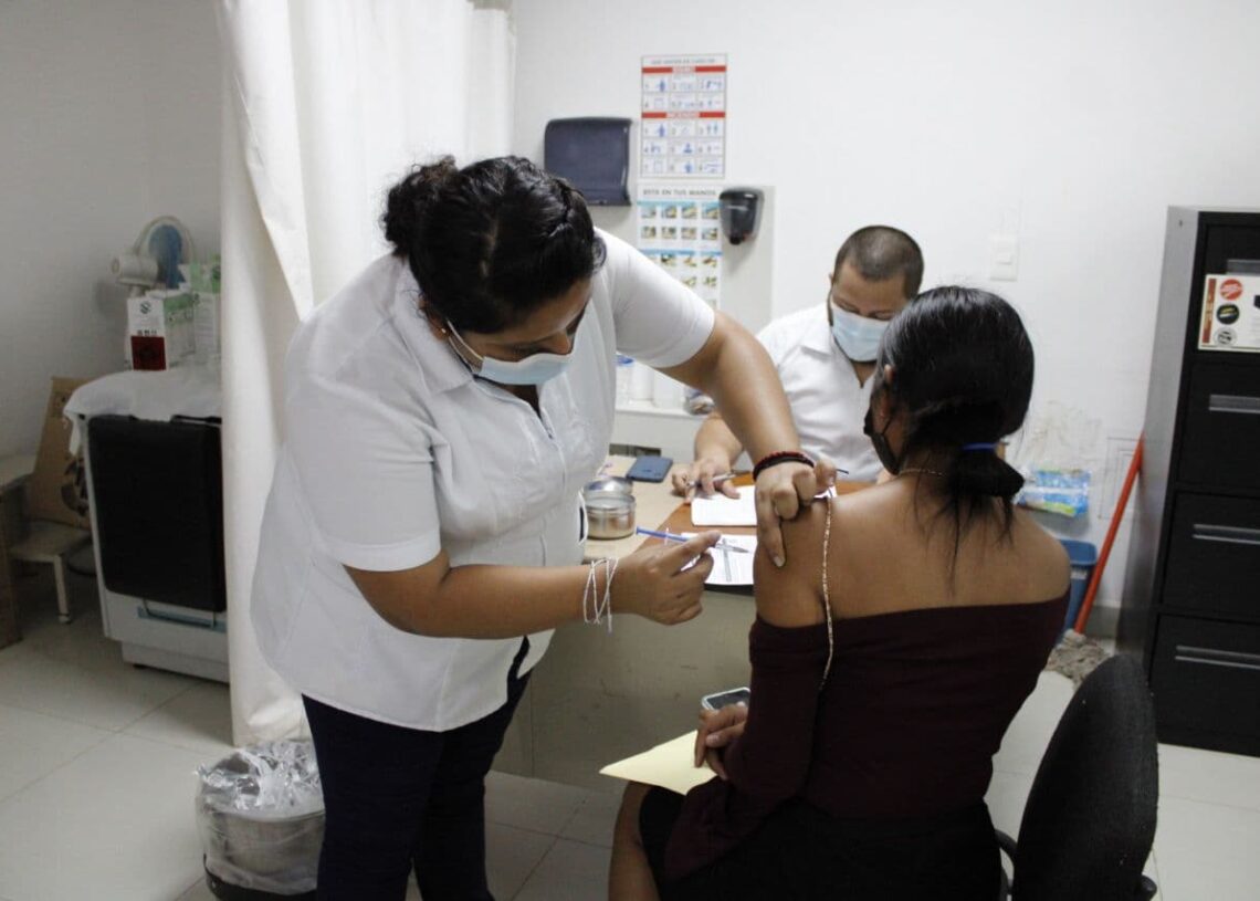 Leona Vicario, Puerto Morelos, Quintana Roo, 16 de noviembre de 2021.- El gobierno de Puerto Morelos, a través de la Secretaría municipal de Desarrollo Social y la Dirección general de Salud, en coordinación con la Secretaría de Salud Estatal (SESA) y la Secretaría del Bienestar, participan en la promoción de la vacunación contra la Covid-19, que se aplica desde este martes y concluirá el próximo viernes.