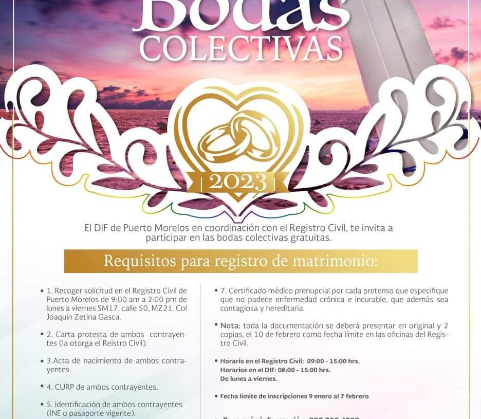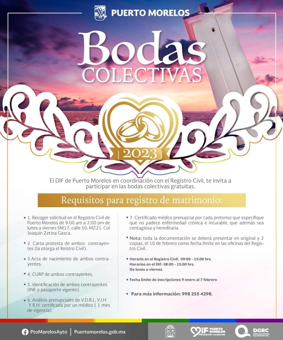 REITERA GOBIERNO DE PUERTO MORELOS INVITACIÓN A PARTICIPAR EN LAS BODAS COLECTIVAS 2023
