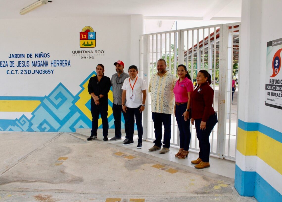 Los funcionarios visitaron el Colegio de Bachilleres, plantel Puerto Morelos, y el jardín de niños “Tereza de Jesús Magaña Herrera”, marco en el que el titular de Protección Civil mencionó que las instalaciones seleccionadas para resguardar a la población, en su mayoría escuelas, fueron supervisadas previamente por personal de la dependencia y Bomberos, así como elementos de las secretarías de la Defensa Nacional (Sedena) y de la Marina (Semar), entre otras instancias.