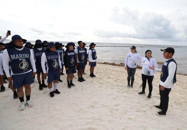 Puerto Morelos, Quintana Roo, 2 de agosto de 2025.—“En Puerto Morelos estamos empeñados en mantener limpias de sargazo nuestras playas, por eso, en el periodo abril-junio recolectamos más de mil 400 toneladas, a fin de ofrecer a los portomorelenses y visitantes arenales atractivos para su disfrute”, manifestó la presidenta municipal Blanca Merari Tziu Muñoz.