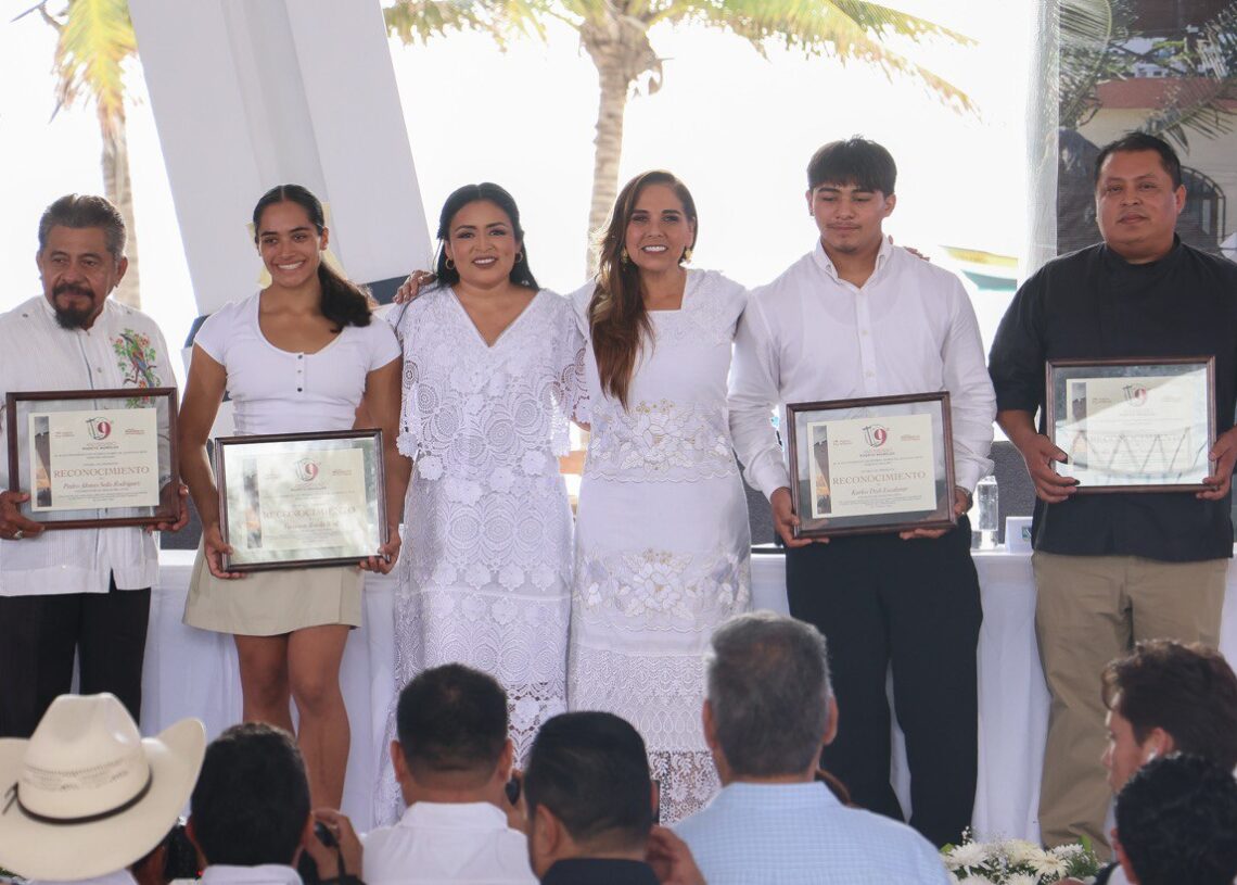 En el evento se entregaron reconocimientos a la gobernadora Mara Lezama, por su apoyo e incansable labor a favor de las y los portomorelenses; a Pedro Alonso Solís Rodríguez, ex director del Registro Civil, por su labor en el servicio público; a los deportistas Verónica Arsola Weil y Karlos Dzib Escalante, así como al chef Nicolás Margarito Soancatl Sánchez, por su contribución a la conservación de la gastronomía regional en Puerto Morelos.