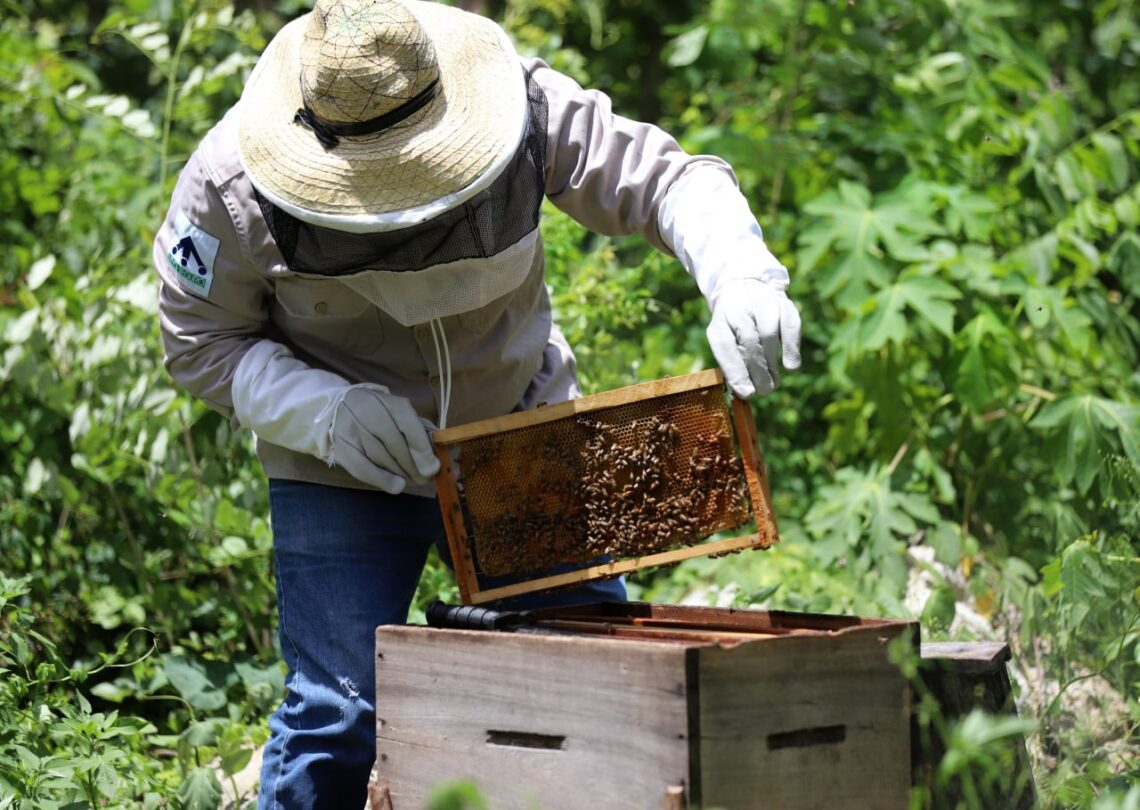 Puerto Morelos, Quintana Roo, 30 de diciembre de 2023.— Conforme al compromiso asumido por la alcaldesa Blanca Merari Tziu Muñoz desde su campaña, la apicultura recibe fuerte impulso en esta administración y ya se prepara para llevar el dulce al mercado internacional, afirmó Manuel Góngora Sansores, director de Fomento Agropecuario, de la Secretaría municipal de Desarrollo Económico y Mejora Regulatoria.