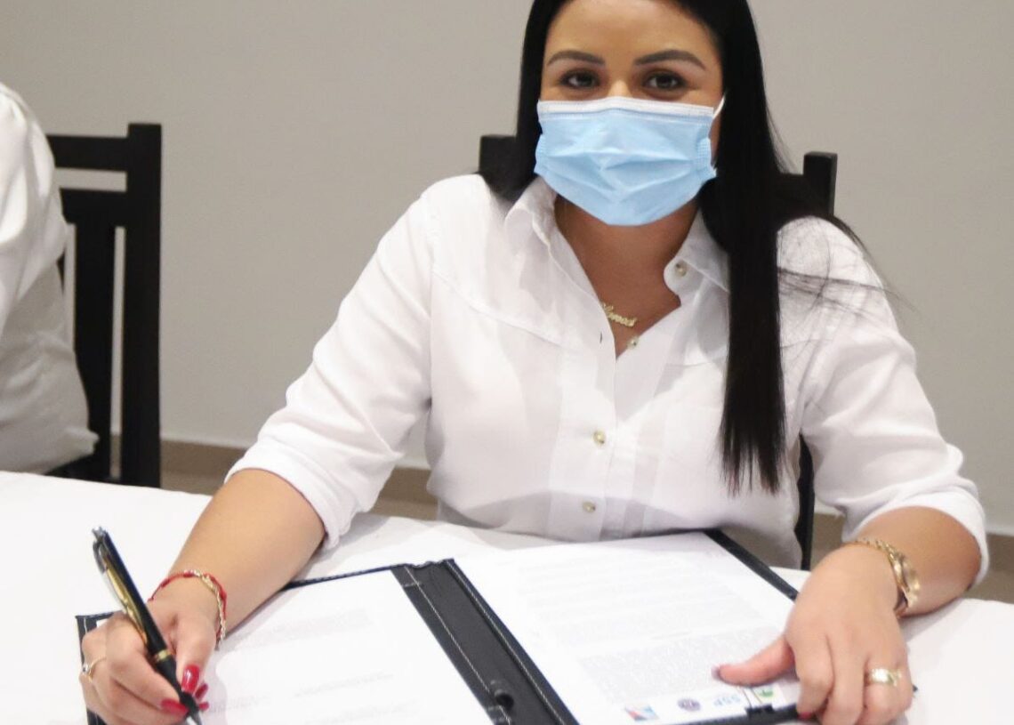*La presidenta municipal Blanca Merari Tziu suscribe el documento con el secretario estatal de Seguridad Pública, Lucio Hernández, y confía en que permitirá consolidar la armonía social, el estado de derecho y la paz social que los portomorelenses reclaman