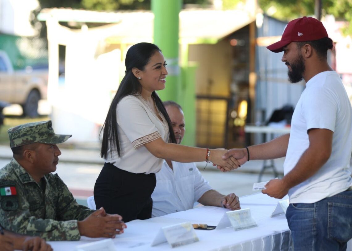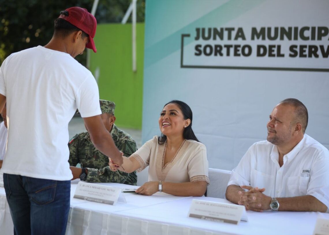 La presidenta municipal Blanca Merari Tziu Muñoz encabezó el sellado de los documentos de los jóvenes que se registraron para prestar su Servicio Militar, a quienes felicitó por cumplir con esta obligación ciudadana, de la cual dijo no se trata sólo un trámite de obtención de la cartilla, sino de un servicio a la patria.
