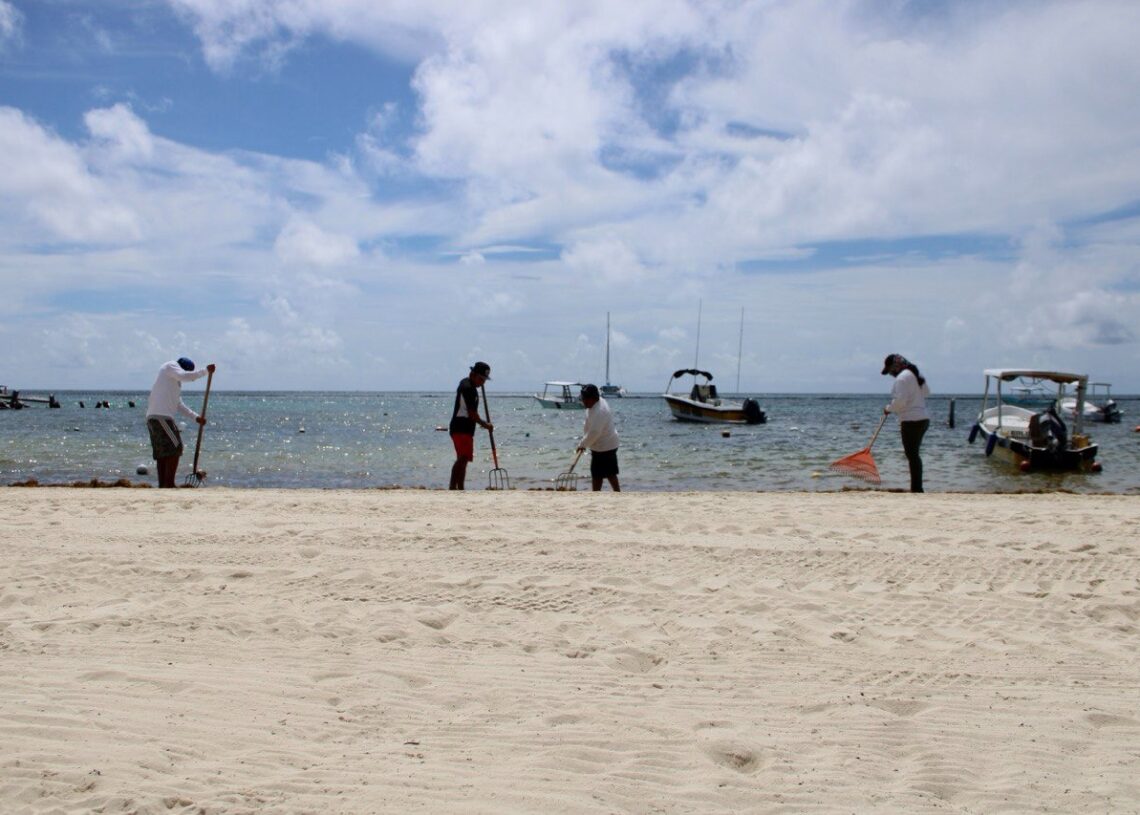 Asimismo, trabajadores de la Zona Federal Marítimo Terrestre (Zonfemat) de Puerto Morelos hacen lo propio en otro tramo de playa, unidos a las organizaciones de la sociedad civil que también tomaron el rastrillo, la carretilla y la pala para realizar tareas de limpieza.