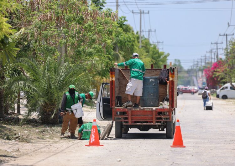 La Presidenta Municipal de Puerto Morelos recorrió calles de dicha colonia, donde constató la instalación de alumbrado público, limpieza de pozos de absorción y areneros, barrido de maleza en áreas jardinadas y camellones, así como el retiro de cacharros en espacios públicos.