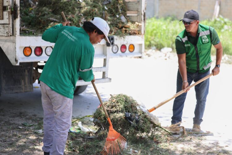 Más adelante, en la misma avenida Timón, casi esquina con Ciricote, supervisó las labores de limpieza de parques y áreas jardinadas, encabezadas por José Luis Chacón Cool. Estas tareas incluyen chapeo, poda de árboles, barrido y levantamiento de residuos vegetales, con el objetivo de mantener una imagen urbana ordenada y limpia.