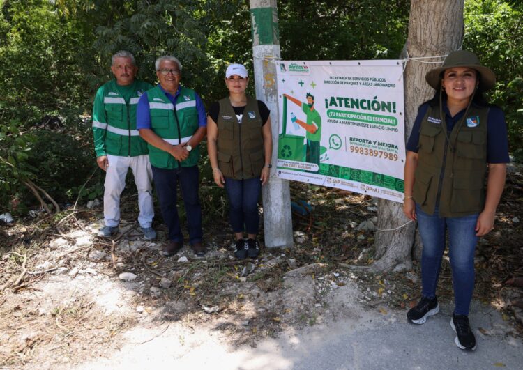 Junto con la secretaria de Medio Ambiente, Bienestar Animal y Movilidad Sustentable, Aimee Regina Rodríguez Vivas; el director de Manejo Integral de Residuos Sólidos, Miguel Armin Gutiérrez Novelo; y el secretario de Servicios Públicos, Leonel Salazar Trejo, se anunció que se colocarán letreros en diversos puntos del municipio con el número del programa “Reporta y Mejora” (998 389 7989), para que las y los ciudadanos puedan solicitar el retiro de cacharros y se evite la proliferación de tiraderos clandestinos.
