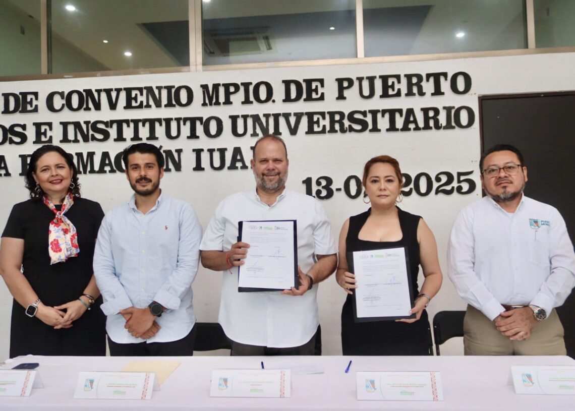 Puerto Morelos, Quintana Roo, 14 de febrero de 2025.– Luego de suscribir, en representación de la presidenta municipal Blanca Merari Tziu Muñoz, un convenio con el Instituto Universitario de Alta Formación (IUAF), el secretario general del Ayuntamiento, José de Jesús Espinosa Payán, afirmó que el documento refleja “el compromiso mutuo que tenemos de trabajar juntos para ofrecer educación de calidad a nuestra gente”.