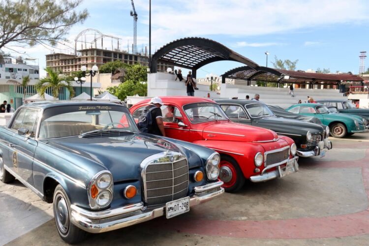 Luego de una agenda de convivencia entre pilotos y de la exhibición que lució en el parque Fundadores en el Casco Antiguo del municipio, los competidores llegaron en su autos cuya fabricación data de los años 1950s, 60s y 70s a la Estación del Tren Maya de Puerto Morelos, como parte de la promoción de la milenaria Cultura que recorrerán en esta competencia.