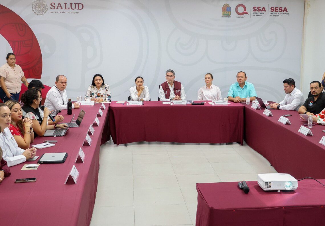 La reunión se desarrolló en la Biblioteca del Hospital General “Jesús Kumate Rodríguez” de la ciudad de Cancún, a la que también asistieron los alcaldes: de Lázaro Cárdenas, Nivardo Mena,; de Isla Mujeres Atenea Gómez Ricalde; y de Benito Juárez, Ana Patricia Peralta de la Peña , asi como los directores de salud de los municipios antes mencionados.