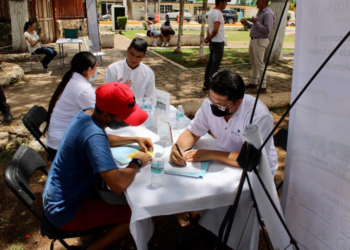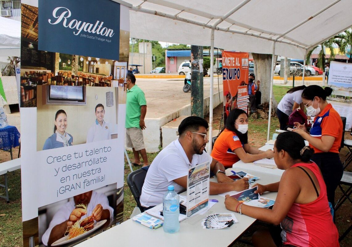 Leona Vicario, Puerto Morelos, Quintana Roo, 6 de septiembre de 2022.- El gobierno de la presidenta municipal Blanca Merari Tziu Muñoz refuerza acciones para apoyar la economía de las familias de esta comunidad, con la organización la 5ª. Feria del Empleo, “Contrátate con Puerto Morelos”, que se llevó a cabo en el parque principal, donde se reunieron empresas locales y ciudadanos.