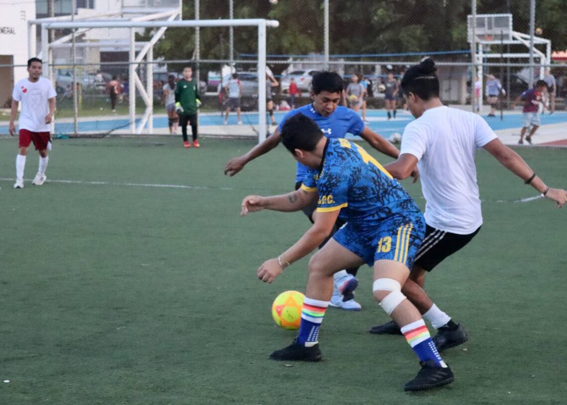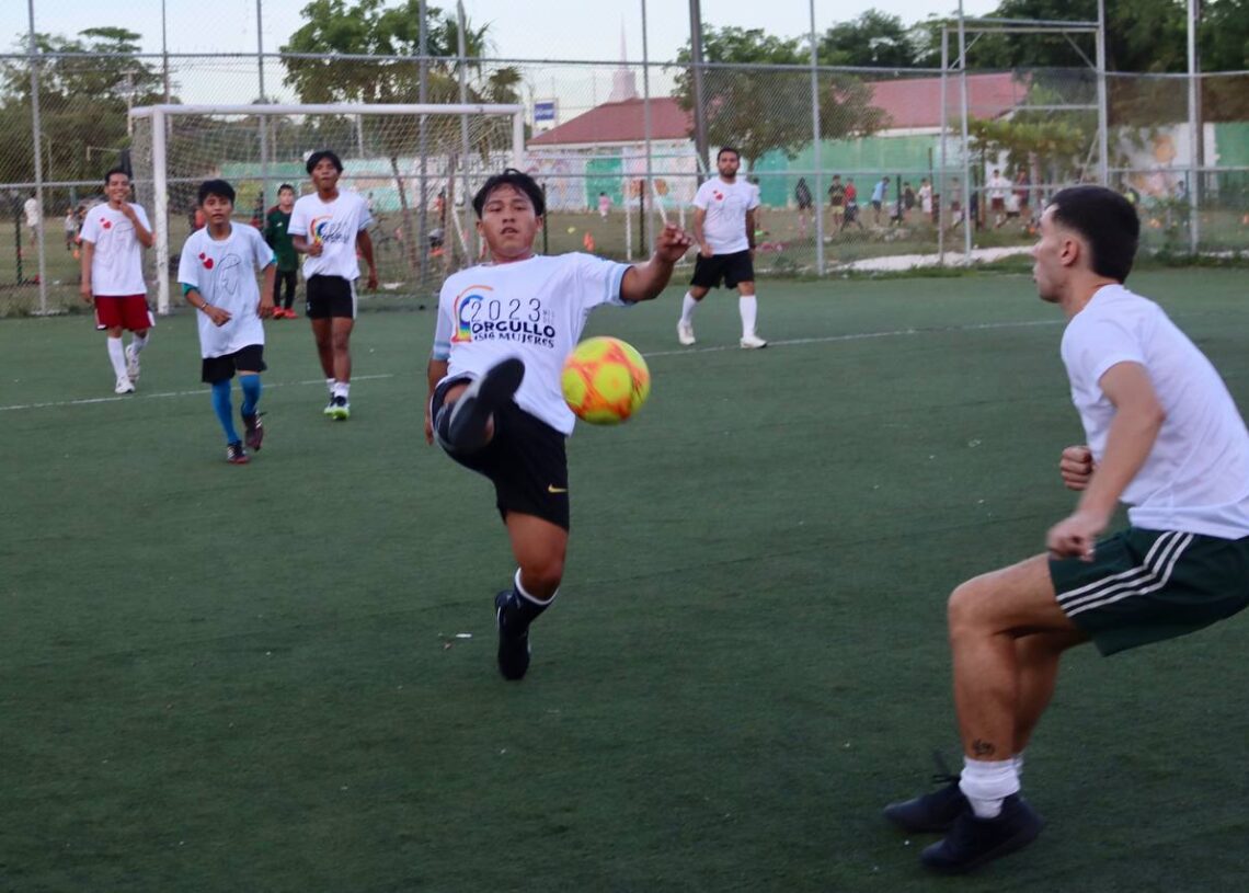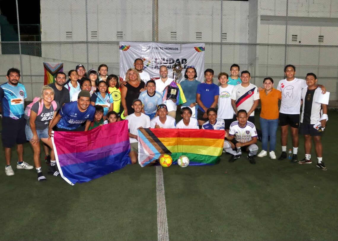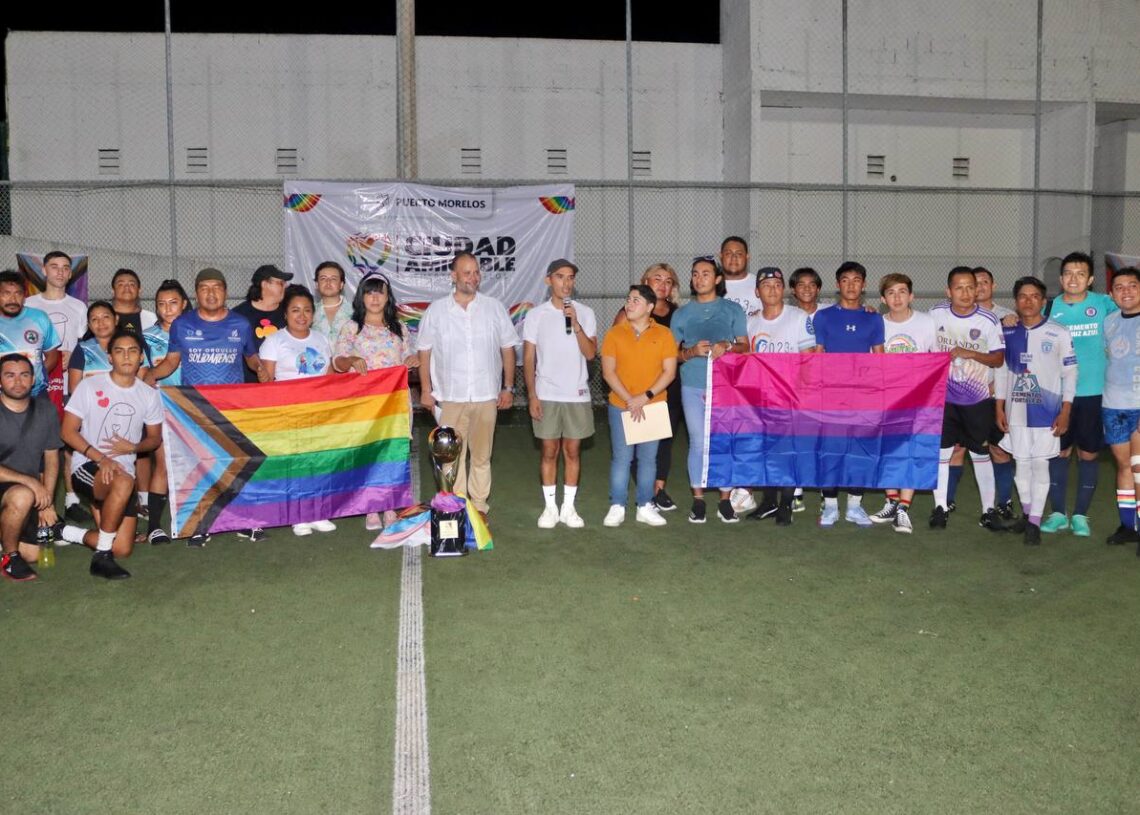 Puerto Morelos, Quintana Roo, 30 de septiembre de 2023.— En el marco de la conmemoración del Día Internacional de la Visibilidad Bisexual, el gobierno de Puerto Morelos, a través de la Dirección de la Diversidad Sexual, organizó un encuentro deportivo entre la comunidad LGBTTTIQ+, con un torneo de fútbol organizado en la Unidad Deportiva de la colonia Pescadores, de esta cabecera municipal.